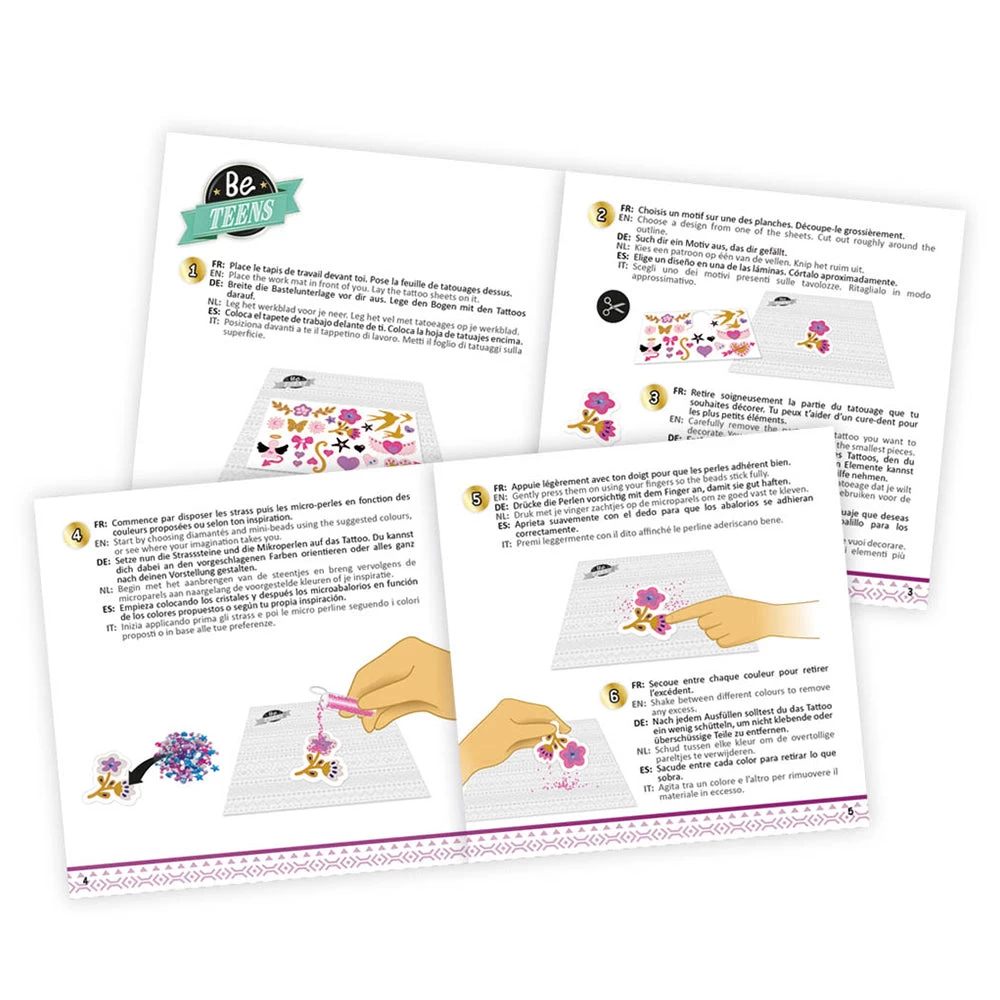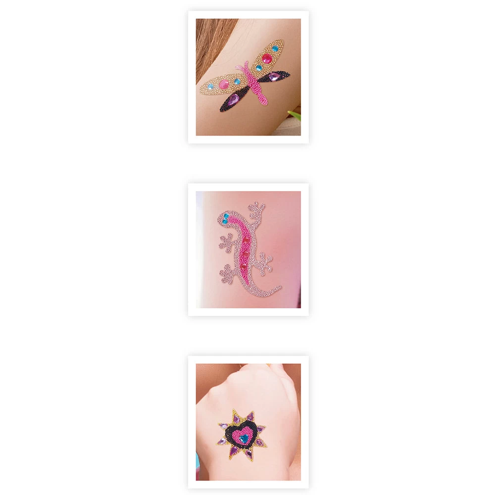 - Choose your design, decorate it using the mini-beads, and stick your tattoo on your skin for a trendy look!