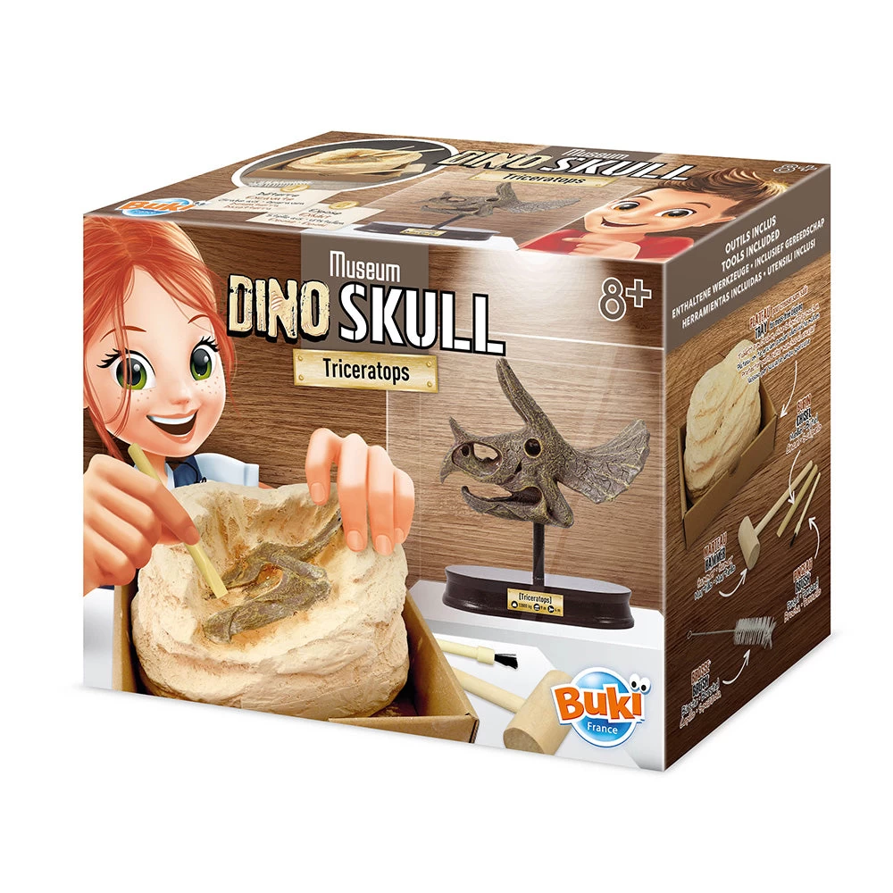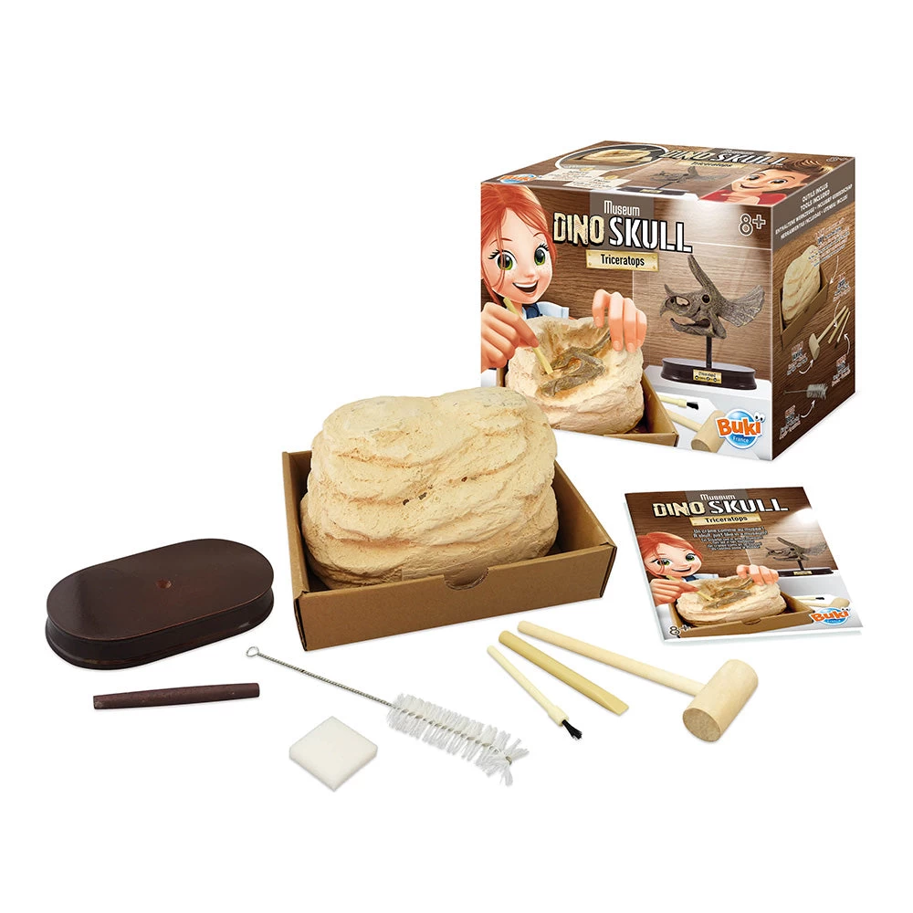 - A complete set to dig out a realistic reproduction of a dinosaur skull