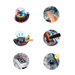 - Easy connections with authentic electronics components: resistors, diodes, switches, rotating lights, LEDs, loudspeakers, and more.