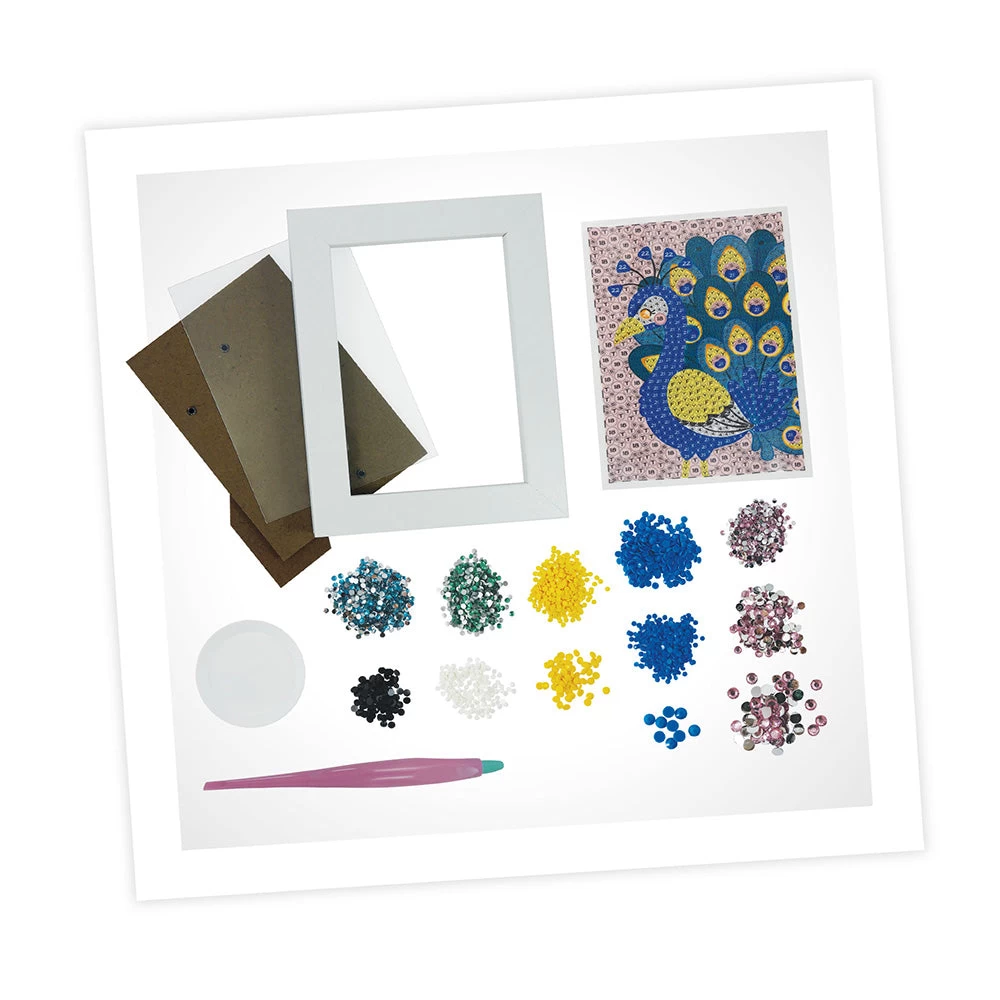 - Included: self-adhesive board, assortment of diamante, wax tip stylus, small tray, bags for storing the diamante, wooden frame is included.