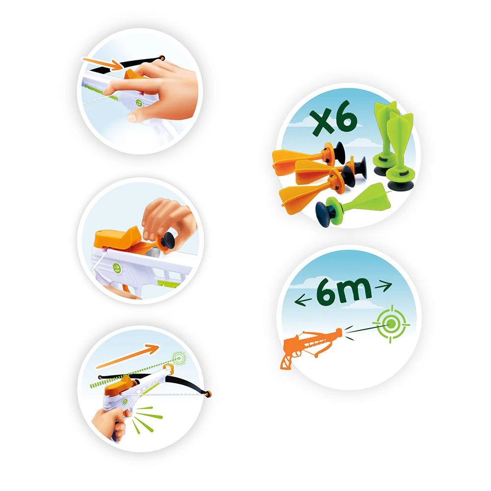 - Mechanism developed by an archery specialised company: the mechanism and the suction cup arrows make it safe to use