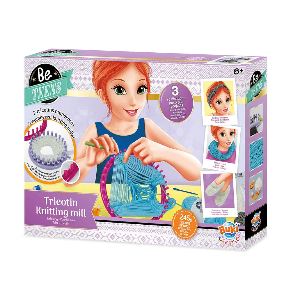 - Learn to knit a pair of slippers, a headband and a scarf using circular knitting mills.