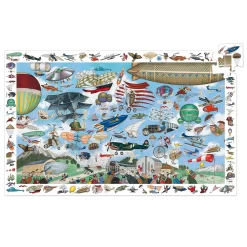 Aero Club is a colourful and lively observation puzzle depicting all sorts of flying machines. First make the puzzle and then find the objects around the border hidden within the puzzle itself. The pack comes with a free poster. Designed by Delphine Jacquot. Skill Development: fine motor skills, observation skills, sequencing, problem solving skill, visual acuity and cognitive development.