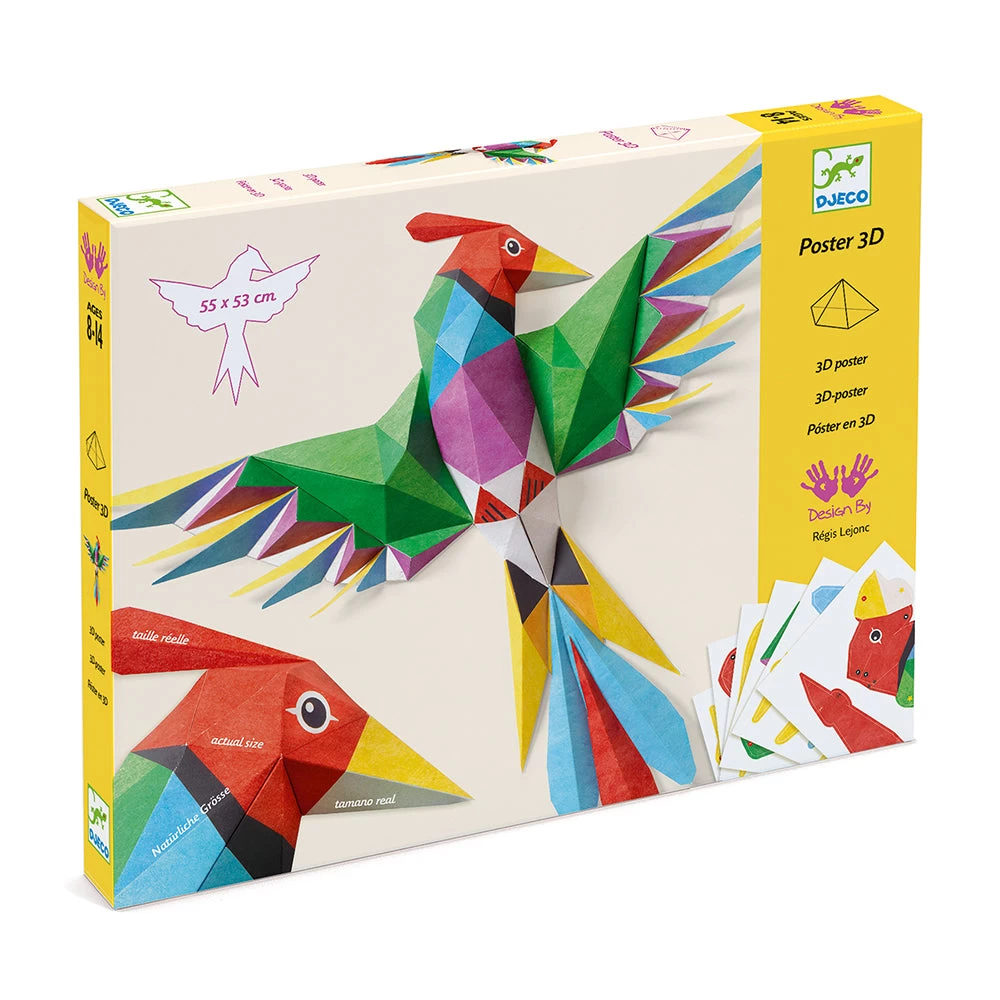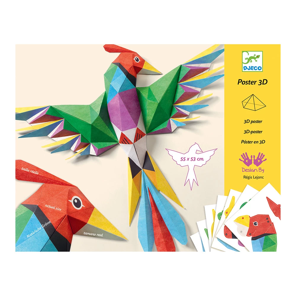 Children pop out the pre-cut pieces of paper, fold them, and assemble using a clever system of notches and glue to create this incredible 3D bird poster designed by Regis Lejonc. Skill Development: dexterity, hand-eye coordination, art appreciation, patience and concentration, creativity and imagination