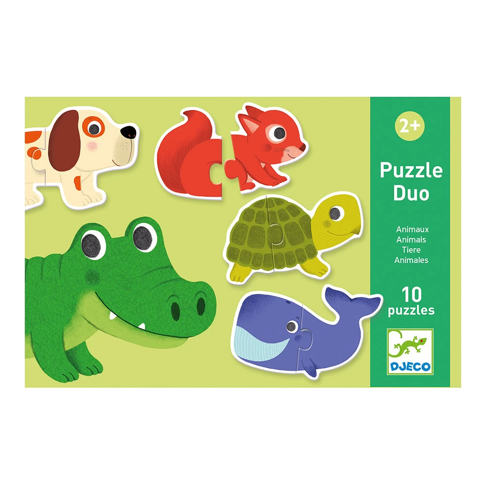 A fun educational puzzle set to match each of the 20 pieces together to create 10 animals. Designed by Nathalie Choux. Skill Development: fine motor skills, vocabulary, dexterity, matching skills and concentration, shape and colour recognition