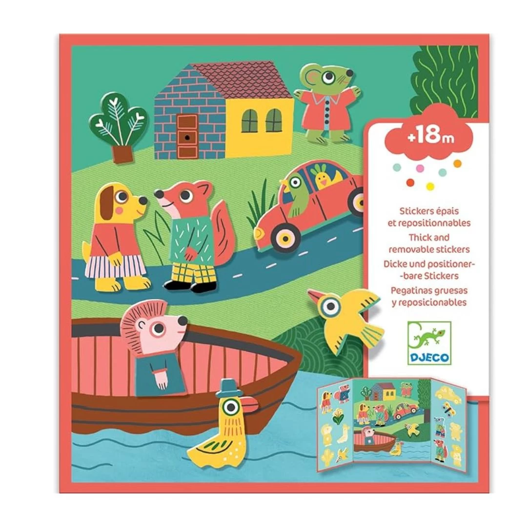 Decorate the outdoor scene with the lovely animal stickers.