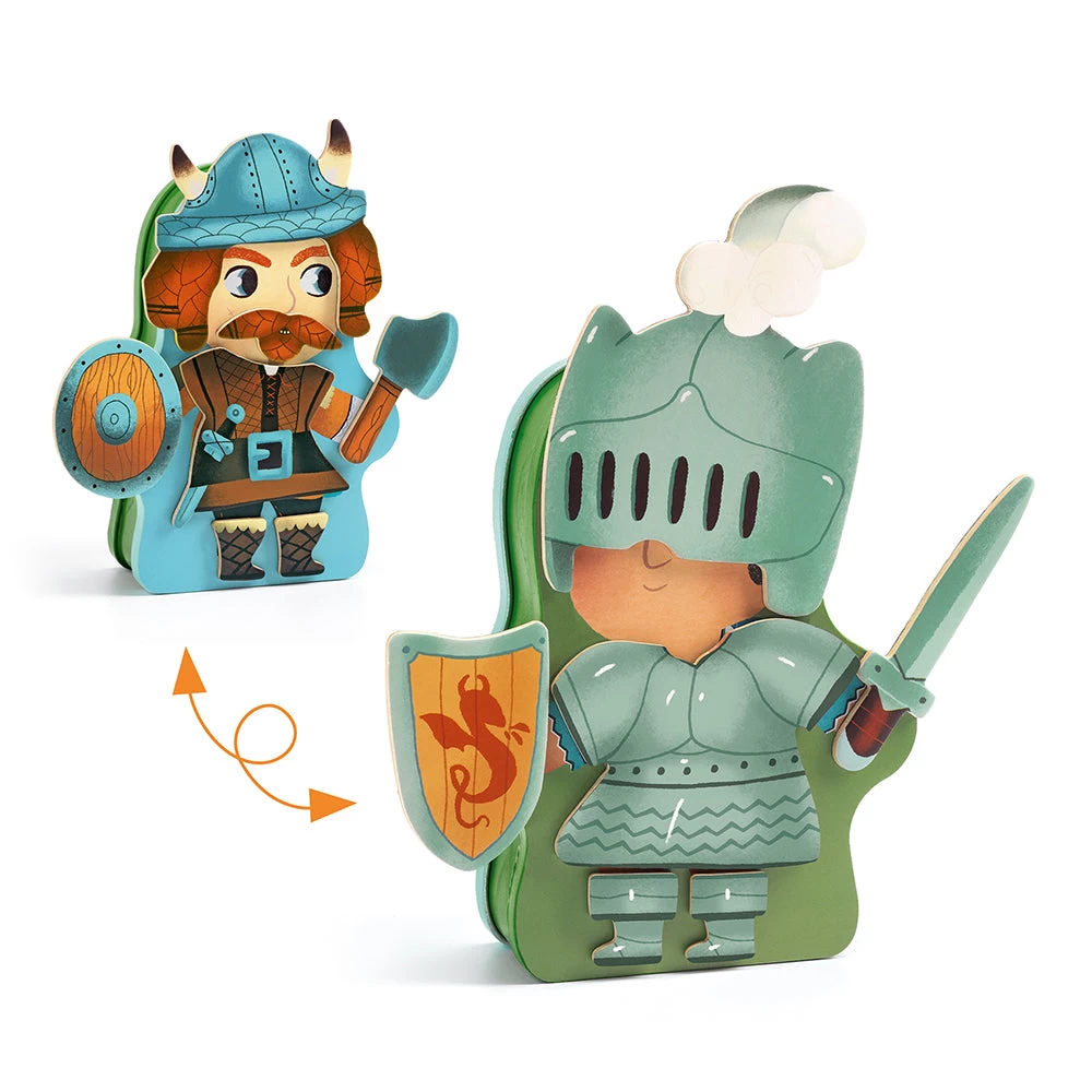 The contoured metal case contains 27 wooden magnetic pieces. Place the pieces on the metal box to recreate pirates, knights, vikings, indians and many more. Skill Development: fine motor skills, storytelling and role playing, visual acuity and cognitive development, creativity and imagination