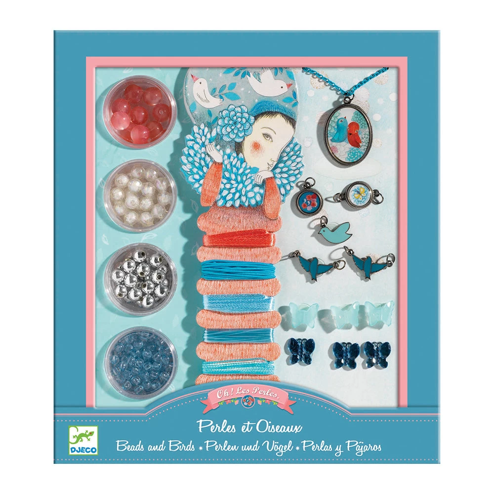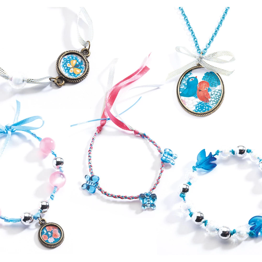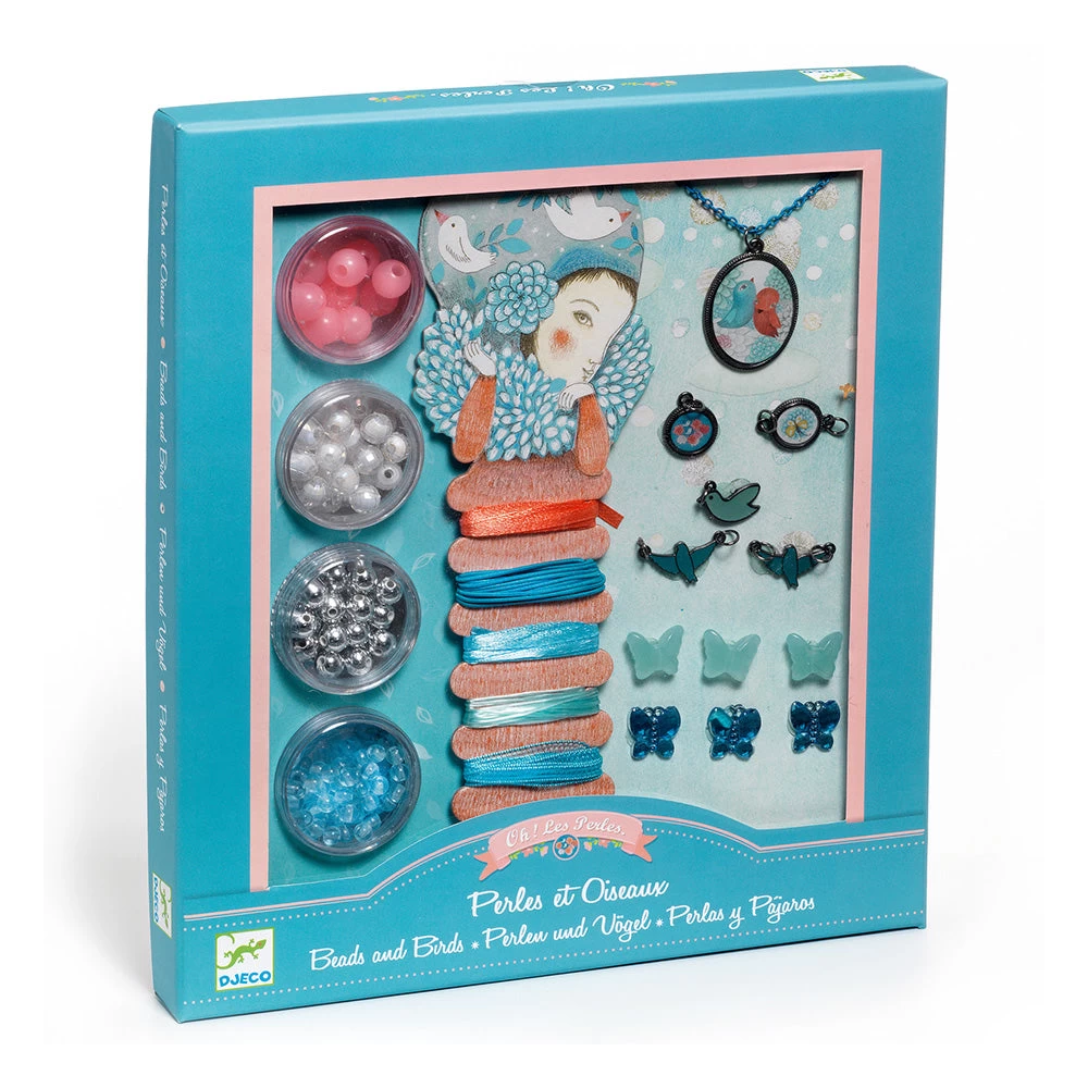 Fish and bird themed jewellery kit that offers a stylish craft activity gift. Exquisitely designed, the kit contains 4 screw top pots of pretty beads, 5 coloured ribbons, jewellery elastic, a selection of special star beads and 2 charms and 1 illustrated locket with differing designs. Skill Development: dexterity, hand-eye coordination, art appreciation, patience and concentration, creativity and imagination