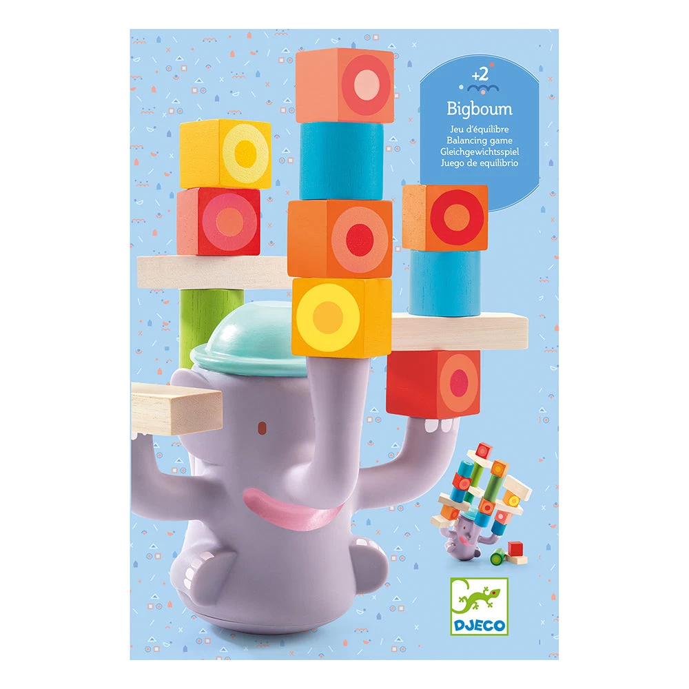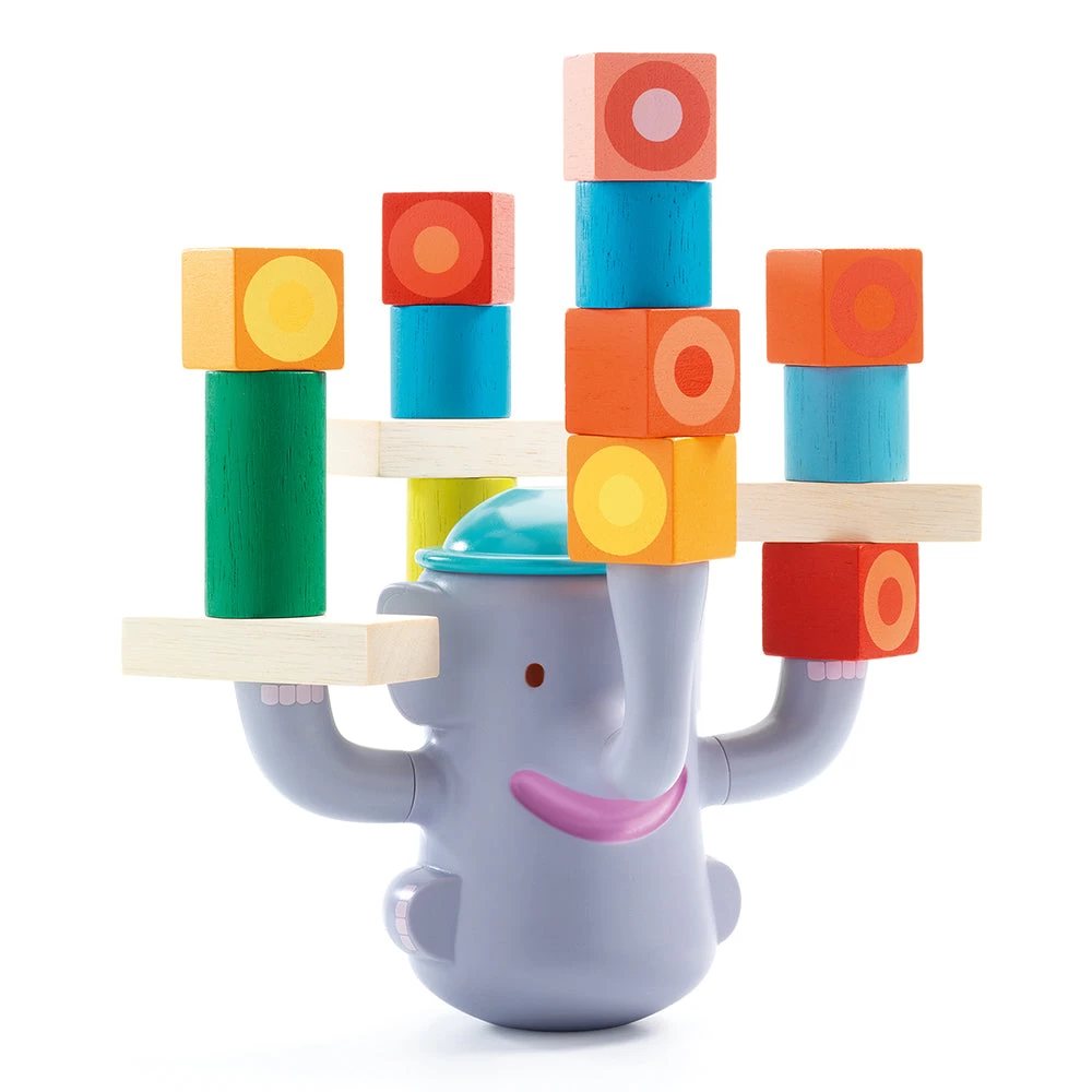 A game of skill for small children. Take turns to stack the wooden blocks onto the elephant starting with the head but be careful, he may topple over at any time. Skill Development: fine motor skills, problem solving skills, hand-eye coordination, spatial awareness, cause and effect introduction