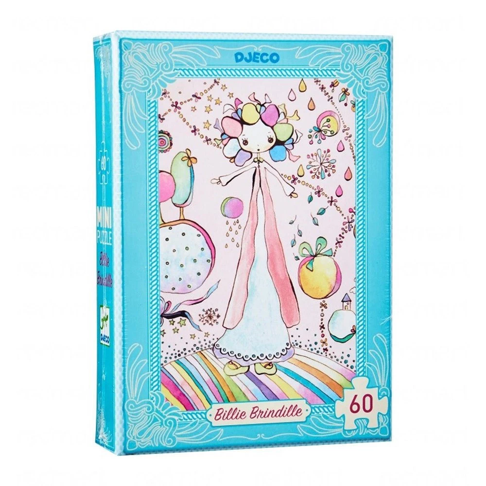 An awesome mini puzzle with 60 pieces featuring a sweet pastel girl illustration. Great for travel and on the go fun. Illustrated by Virginie Brachet. Skill Development: fine motor skills, shape recognition, sequencing, problem solving skill, visual acuity and cognitive development.