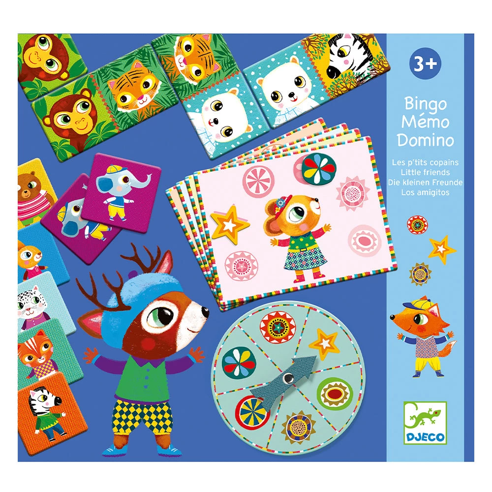 This great value box contains three picture games, Domino, Bingo and Memo- featuring lovely illustrations of cute animals. Skill Development: fine motor skills, introspective intelligence, observation and memory, communication and problem solving skills
