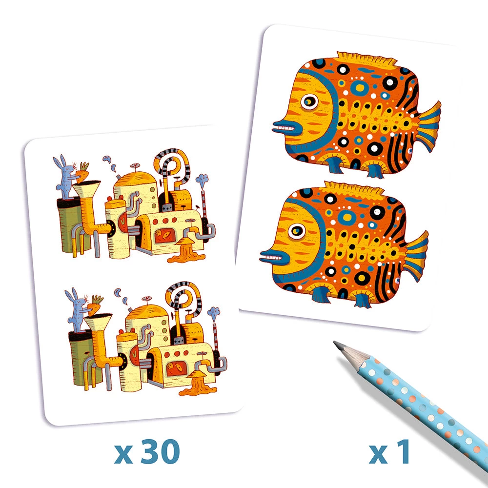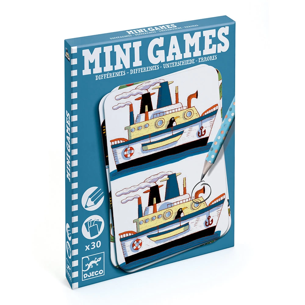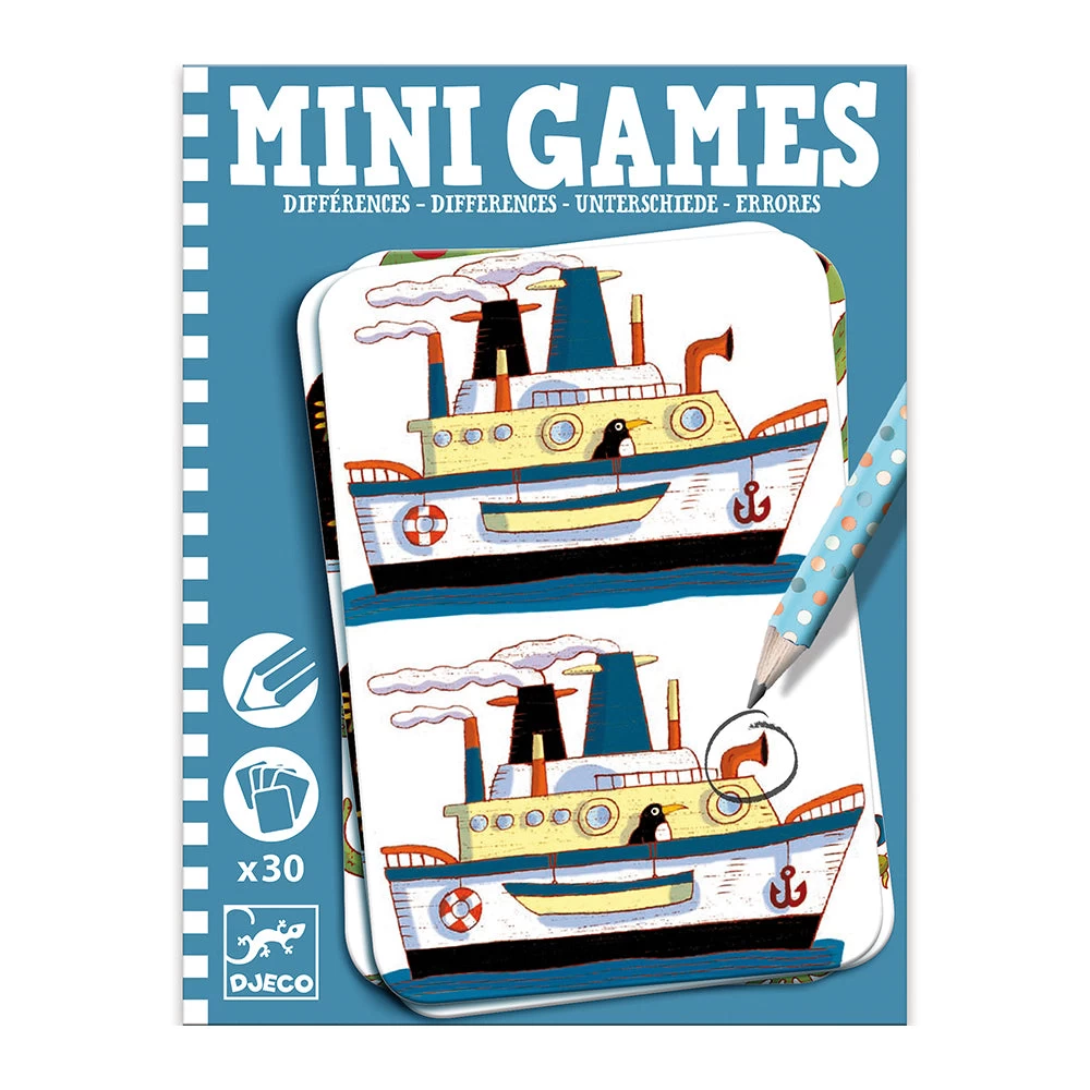 Try to spot the 7 differences between two pictures! Perfect size for taking on a trip. Includes a pencil and 30 spot the difference cards. Skill Development: observations and memory, concentration and dexterity.