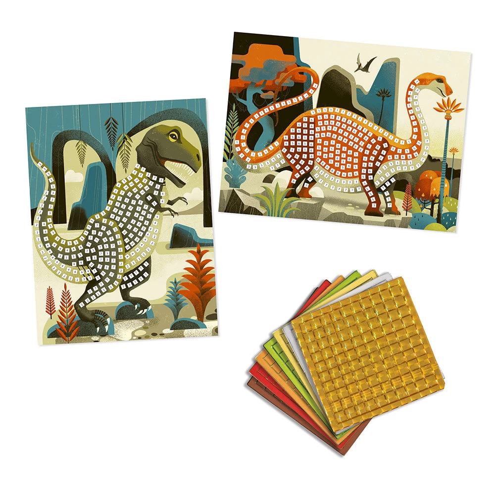 Create these gorgeous dinosaur mosaics with this fantastic mosaic kit that includes colour-code sheets and stick on little squares of shiny, self-adhesive foam. Kit provides 2 different designs. Designed by Gwen Keraval. Skill Development: dexterity, hand-eye coordination, art appreciation, patience and concentration, creativity and imagination