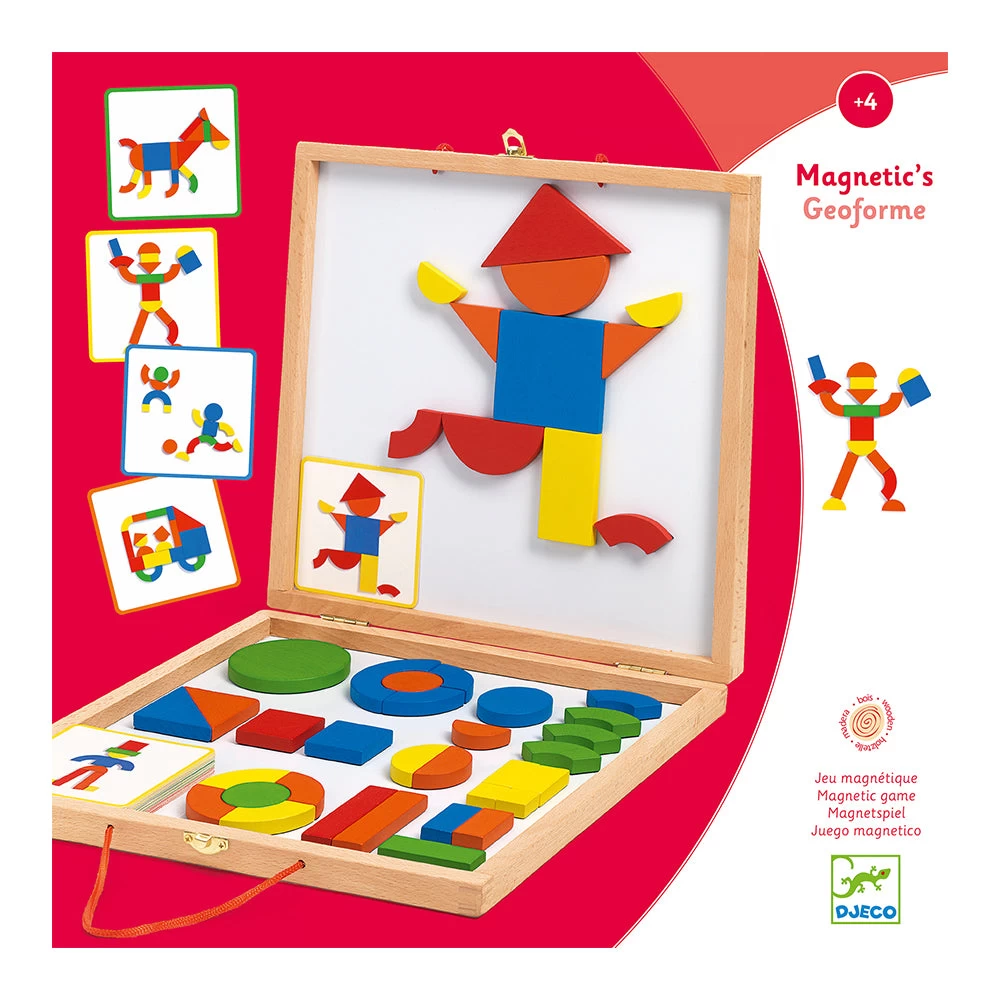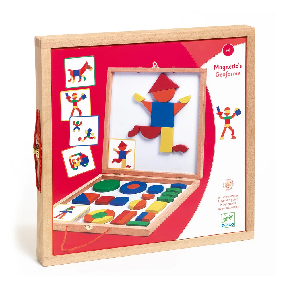 Use the 42 magnetic wood shape to build unique geometric designs; includes 25 design ideas, or create your own. Skill Development: fine motor skills, storytelling and role playing, visual acuity and cognitive development, creativity and imagination