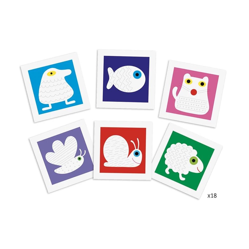 This funky Graphic Animals drawing set contains 18 cards of funny animals for children to draw and colour in any way they choose! Designed by Annette Tamarkin Skill Development: dexterity, hand-eye coordination, shape recognition, patience and concentration, creativity and imagination