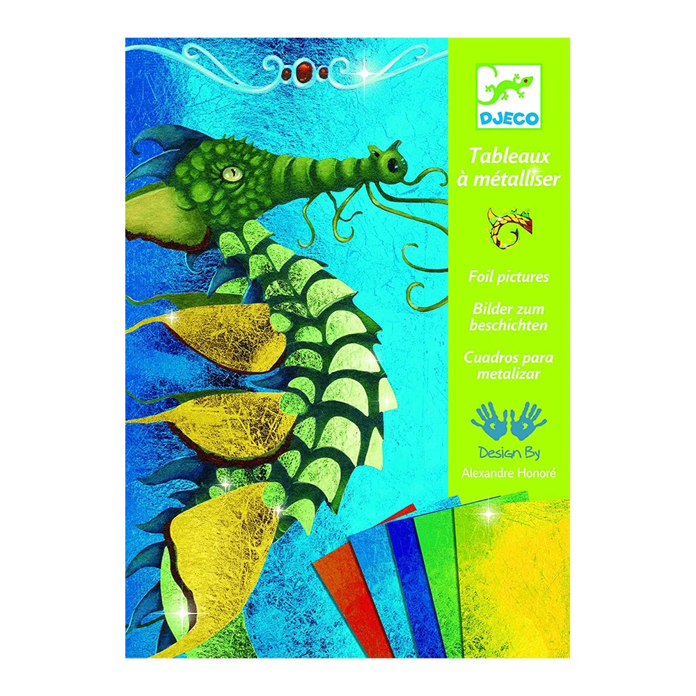 This beautiful craft kit is bound to appeal to creative boys with 4 cards with sticky areas which the child should place the metallic leaf to create stunning dragon pictures that will really sparkle in the light. Contains 4 sticky cards, 9 foil sheets in a range of colors, 1 tool to uncover the sticky-backed sections, step by step color booklet. Skill Development: dexterity, hand-eye coordination, art appreciation, patience and concentration, creativity and imagination