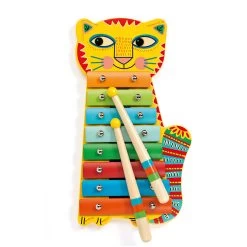 Shaped like a crafty cat, your child can tap out some notes on the Metallophone xylophone with the wooden sticks and colourful metal keys. Comes with 2 downloadable songs for your child to learn. Skill Development: fine motor skills, hand-eye coordination, music knowledge, listening and timing, rhythm, sequencing