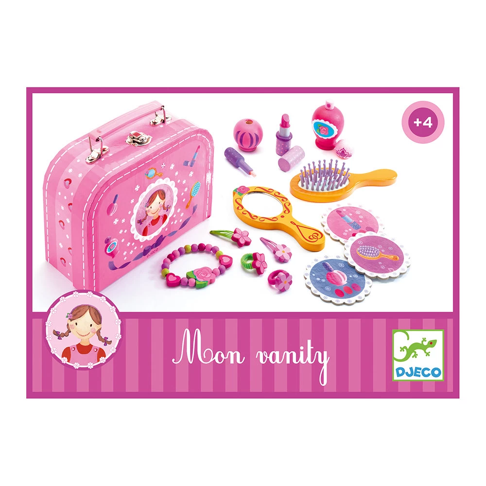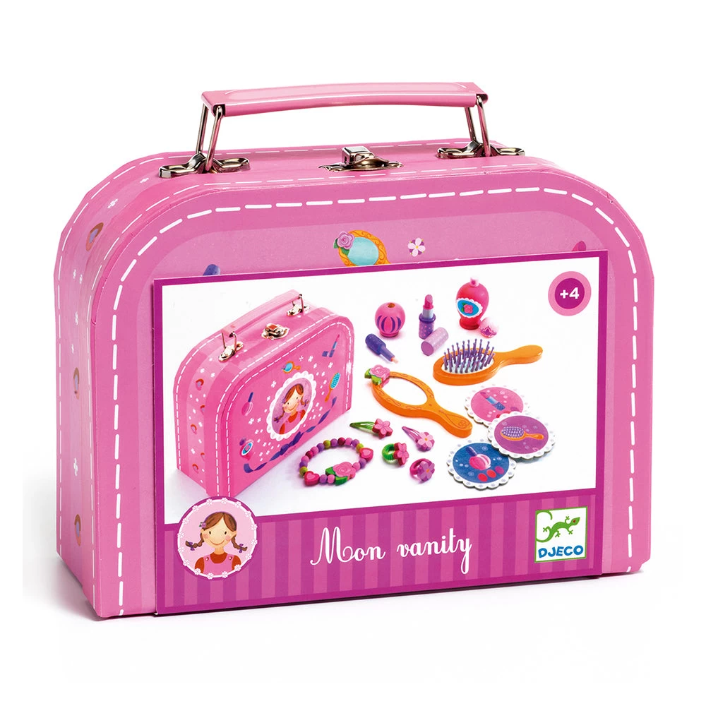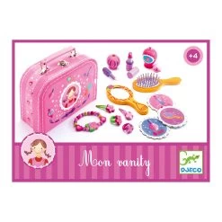 Just the thing for the travelling beauty queen! This pretty little case comes with hairbrush, mirror, lipstick, powder bottle, perfume bottle, two hair slides, two rings and a bracelet. Skill Development: fine motor skills, storytelling and role playing, creativity and imagination, visual acuity and cognitive development, social communication.