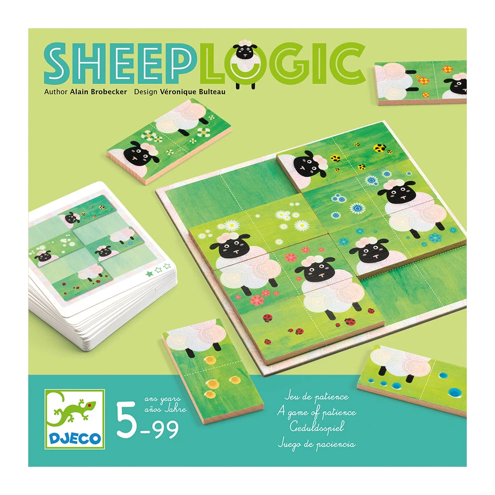 10 wooden dominoes to reassemble the sheep in their meadow and 30 challenge cards with required starting positions. Get your brain working! Solutions are provided. Designed by V?ronique Bulteau. Author Alain Brobecker. Skill Development: strategic and logical thinking, patience and concentration, dexterity, observations and speed