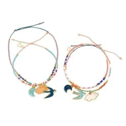In a pretty shiny box, an assortment of beads and charms for creating two fashionable bracelets. Two jewels to keep for yourself or to give as gifts in a pretty organza bag. And for even more memories, two picture cards are included for writing love notes.