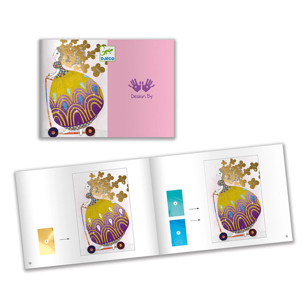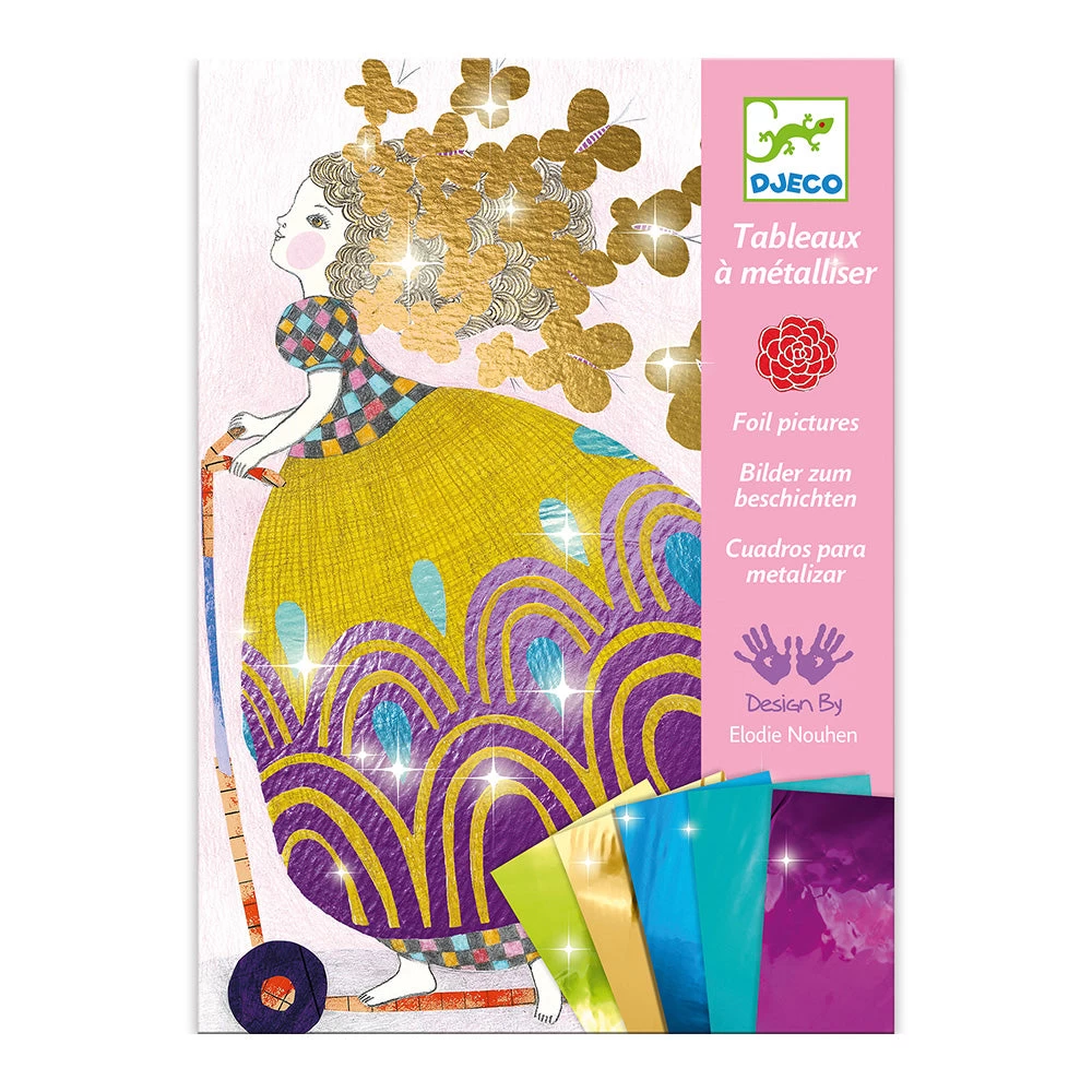 So pretty! foil art craft kit lets children create stunning dolls pictures by rubbing coloured foil sheets over the marked areas. Contains 1 tool, 15 foil sheets, 4 pictures and a step by step guide. Design Elodie Nouhen. Skill Development: dexterity, hand-eye coordination, art appreciation, patience and concentration, creativity and imagination