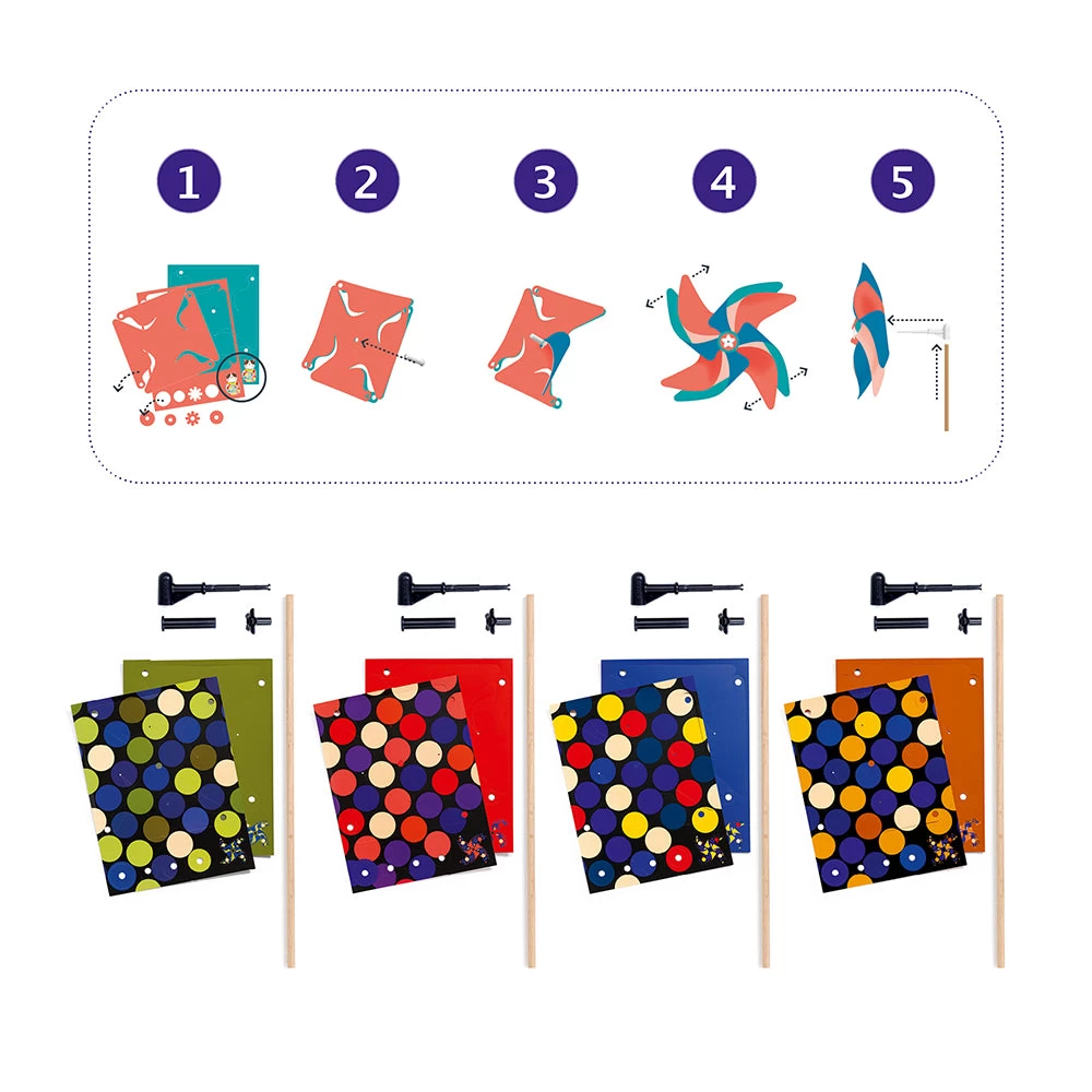 Want to teach children about renewable energy and how windmills work? Create 4 vibrant spinning windmills with pre-cut sheet and accessories. Skill Development: dexterity, hand-eye coordination, colour and shape recognition, patience and concentration, creativity and imagination