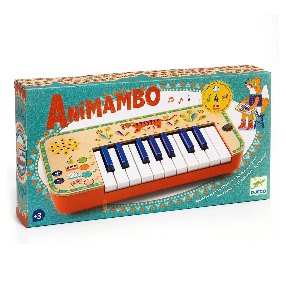 This adorable children’s electric keyboard piano plays 4 classic kids songs; or play it yourself, each color coded key plays a specific note. Battery operated (4 AA batteries, not included). Designed by Magali Antiogbe. Skill Development: fine motor skills, hand-eye coordination, music knowledge, listening and timing, rhythm, sequencing.