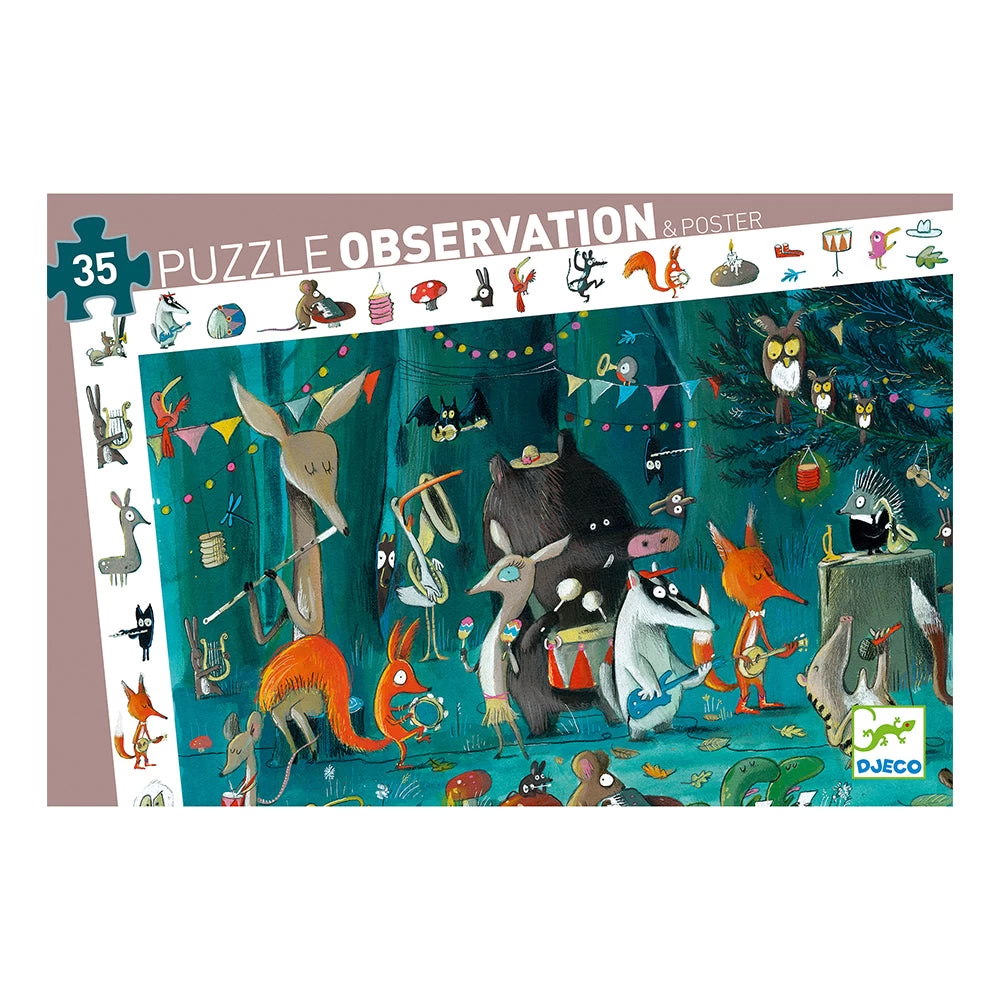 The Orchestra is a beautifully illustrated 35 observation puzzle with a whole host of wild animals. Make the puzzle and then find the objects around the border hidden within the puzzle itself. The pack comes with a free poster. Designed by Olivier Tallec. Skill Development: fine motor skills, observation skills, sequencing, problem solving skill, visual acuity and cognitive development.