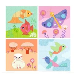 Contents: 9 illustrated sheets to cut out, 4 illustrated cards to decorate, 1 pair of crinkle-cut scissors, 1 sheet of double-sided stickers and a step-by-step explanatory booklet.
