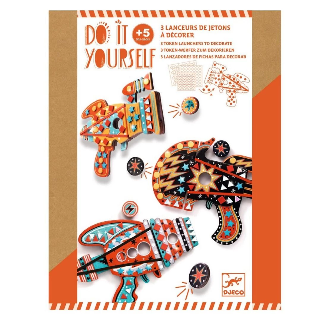 A creative kit containing three counter launchers to decorate with mosaic stickers. Children place the stickers according to the numbers on the launchers. Once all three are finished, all you have to do is arm yourself with counters and head off to conquer the galaxy!