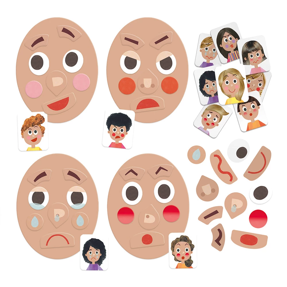 My face is happy, with a smiley mouth! What about yours? Enjoy some real laugh-out-loud fun with this original lotto game, where children can build faces and enjoy the funny expressions they can create. Skill development: recognizing facial expressions, identifying emotions, interpersonal relations, imagination and creativity