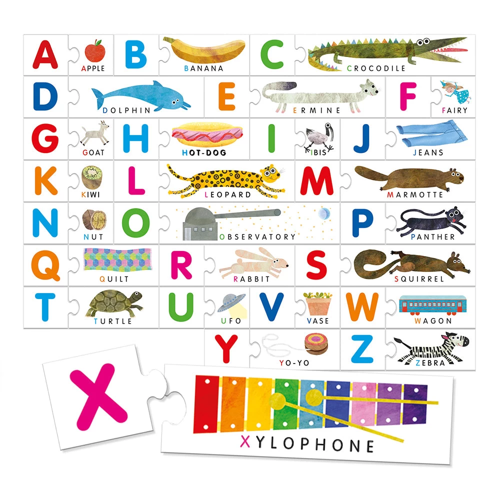 A game for learning to read at the age of 3. Children touch the emery letters, associate the graphemes with the word and, thanks to the special self-correcting tokens, learn the alphabet and can distinguish longer and shorter words. The game includes 26, 2 piece puzzles to help children associate individual letters of the alphabet with common words. Skills development: recognise the alphabet, read your first words, promote tactile sensitivity, develop manual abilities.