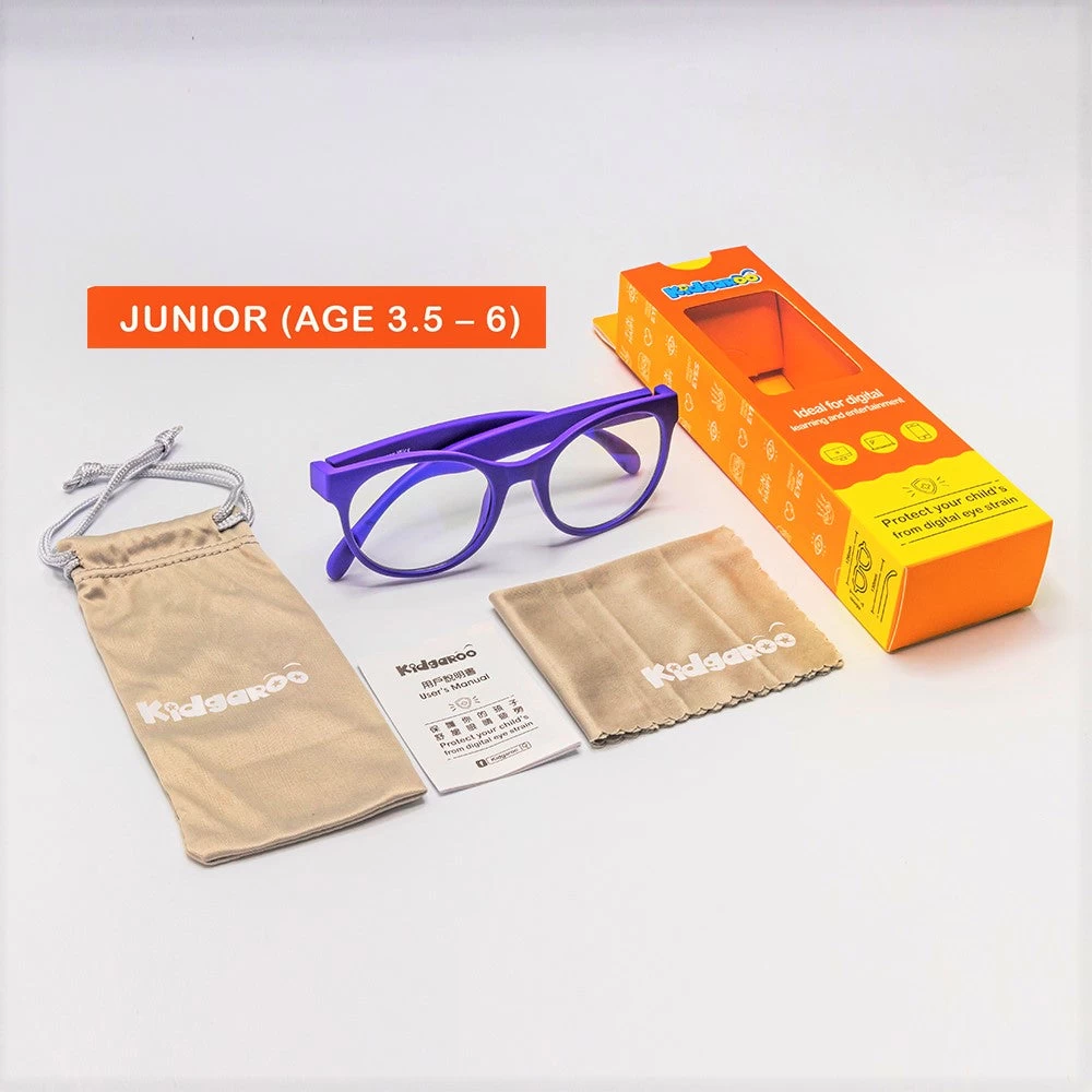 Glasses come in 2 sizes suitable for kids at 3.5-6 years (Junior) & 6-10 years (Teen).