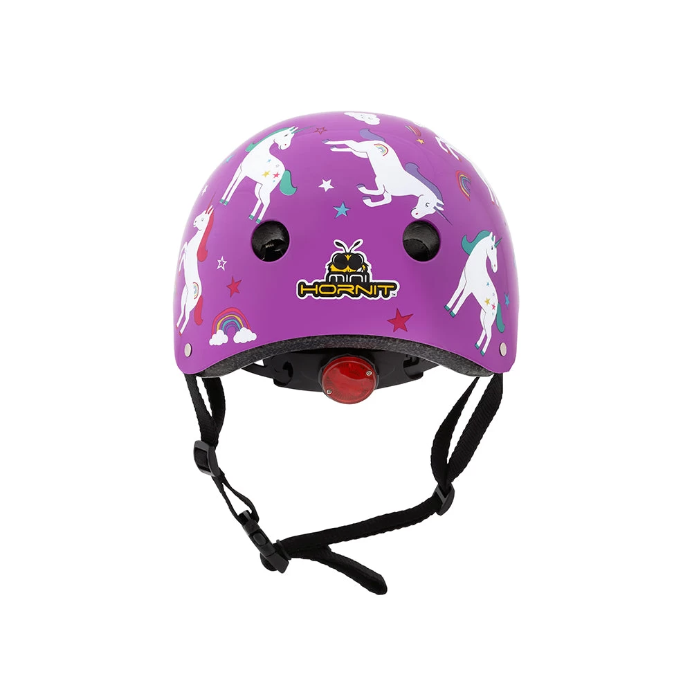 Some people say unicorns are a myth, but on a Hornit adventure anything is possible! With a touch of magic this helmet transports you to a purple galaxy where dreams come true! With rainbows, shooting stars and flying unicorns this helmet is truly out of this world.