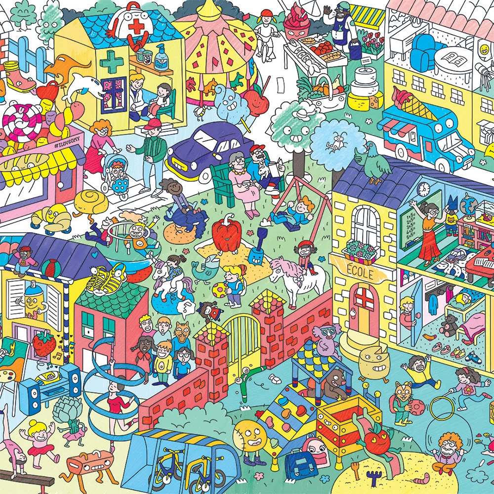 Both educational and amusing, this poster recreates a youngster’s daily life: park, school and hobbies…