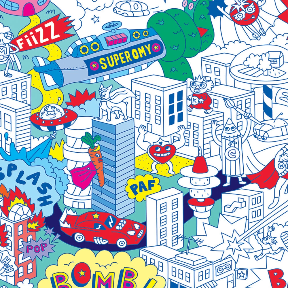 Dive into the fascinating universe of Super Heros! Color and add your super powers to this amazing world!
