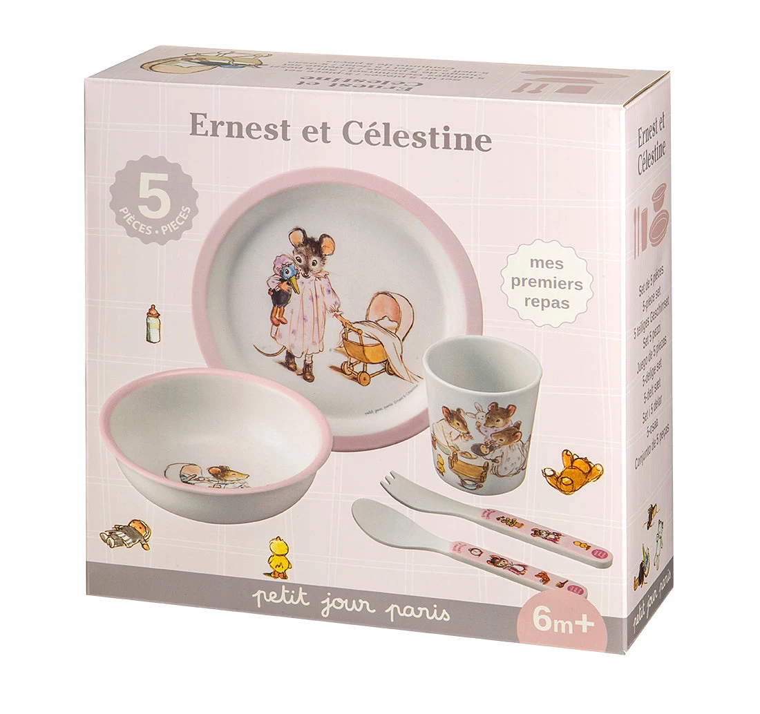 a 2-piece cutlery set, and a drinking cup in the lovely Ernest et Célestine