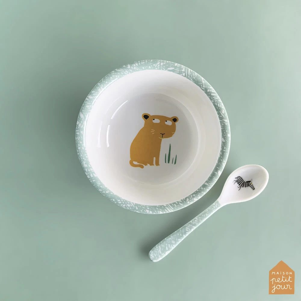 Maison Petit Jour La Savane Bowl w Suction Pad & Spoon (Melamine)