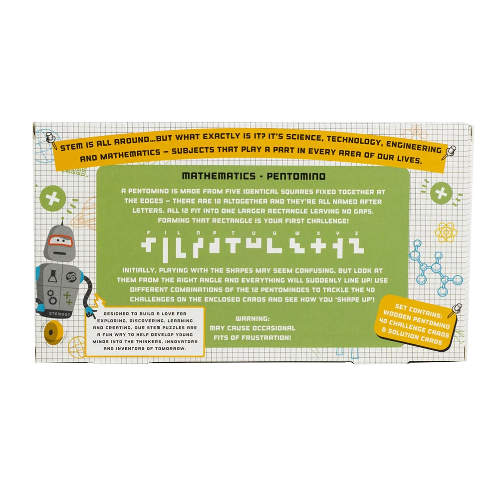 Initially, playing with the shapes may seem confusing, but look at them from the right angle and everything will suddenly line up! Use different combinations of the 12 pentominoes to tackle the 40 challenges on the enclosed cards and see how you shape up