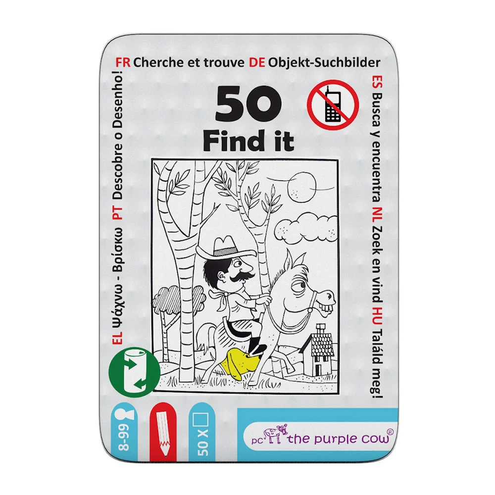 A fun and easy puzzle game with challenges to search and find a character, or an object hidden in a detailed illustration. The cheerful illustrations are the work of the renowned cartoonist Jacky Jackson who’s been publishing these puzzles for over 50 years! The set included a pencil and a pad of 50 pages of puzzles inside a tin. The 50 series is designed specially for travel and give your kids an alternative activity away from screens.